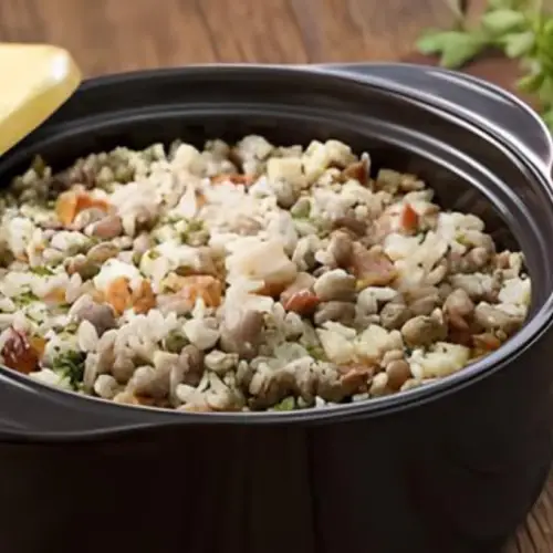 - Cozinhe o Baião de Dois: Cubra com água quente (mais ou menos o dobro do volume de arroz e feijão) e deixe cozinhar em fogo baixo, com a panela semi-tampada, até que o arroz esteja macio e tenha absorvido toda a água.