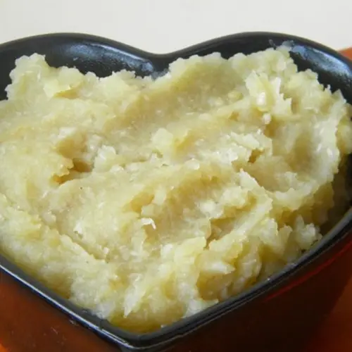 - Amassar as batatas: Quando estiverem cozidas, amasse as batatas ainda quentes com um garfo ou passe pelo espremedor. O importante é que fiquem bem lisinhas, sem pedaços grandes.