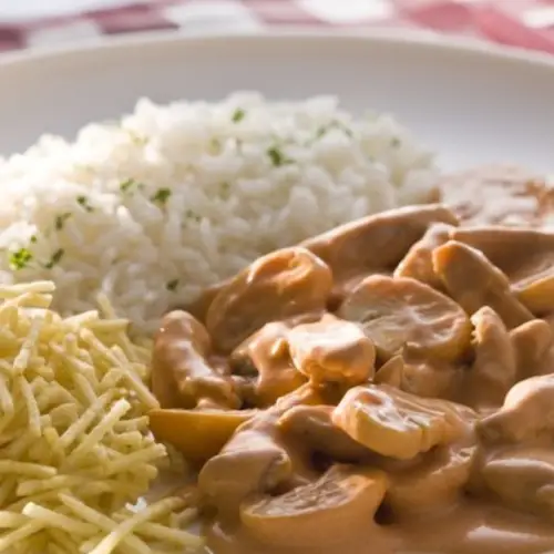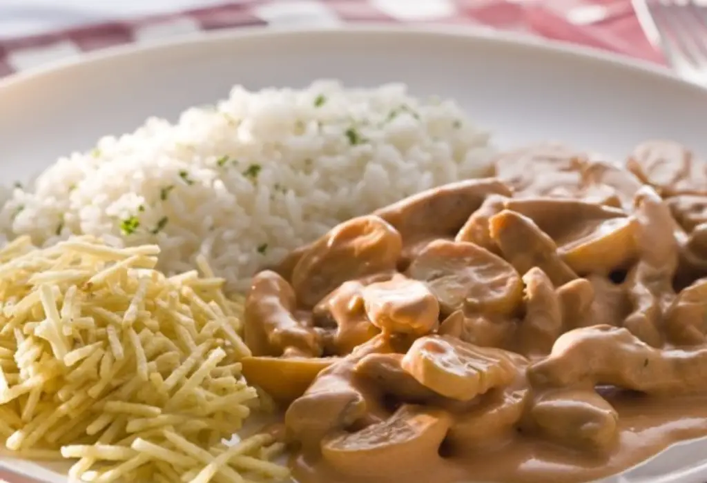 Quais são os acompanhamentos ideais para o estrogonoff de carne na panela de pedra?