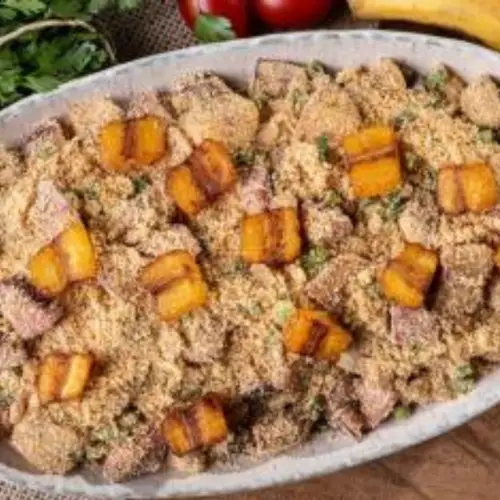 A farofa de banana é aquele prato que une o doce e o salgado de uma forma espetacular. Feita na panela de pedra, ela ganha um sabor especial, bem característico e super aconchegante. A banana, claro, é a estrela, mas outros ingredientes como bacon, cebola e farinha de mandioca não podem faltar. É uma ótima opção pra acompanhar carnes, especialmente em um churrasco de fim de semana ou até mesmo como prato principal num jantar mais descontraído.