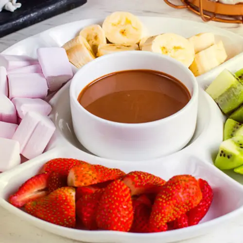Fondue de frutas é uma sobremesa fácil de fazer e que agrada todo mundo. Eu adoro a combinação do chocolate cremoso com o frescor das frutas. Além disso, é super versátil e você pode adaptar com as frutas que tiver em casa. Então, da próxima vez que quiser uma sobremesa diferente, experimente fazer um fondue de frutas! Tenho certeza que você vai amar.