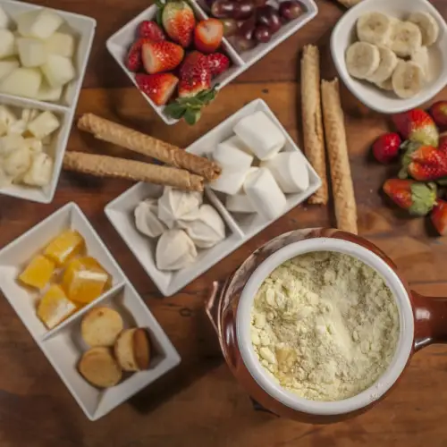 Use pedaços de bolo de chocolate ou biscoitos tipo wafer para mergulhar no fondue. O contraste de texturas vai te surpreender!
