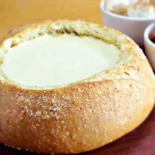 É uma variação moderna do tradicional fondue de queijo, onde o queijo derretido é servido dentro de um pão italiano crocante, que atua como uma tigela comestível.