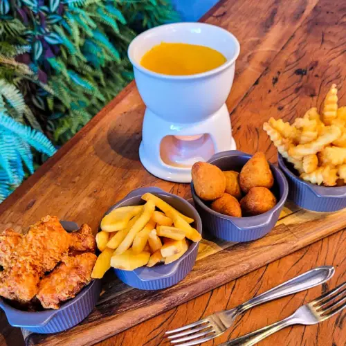 - Servindo: Mantenha o fondue aquecido no rechaud e sirva com os cubos de pão, legumes e pedaços de carne. Cada pessoa pode mergulhar os acompanhamentos no queijo derretido e aproveitar essa delícia.