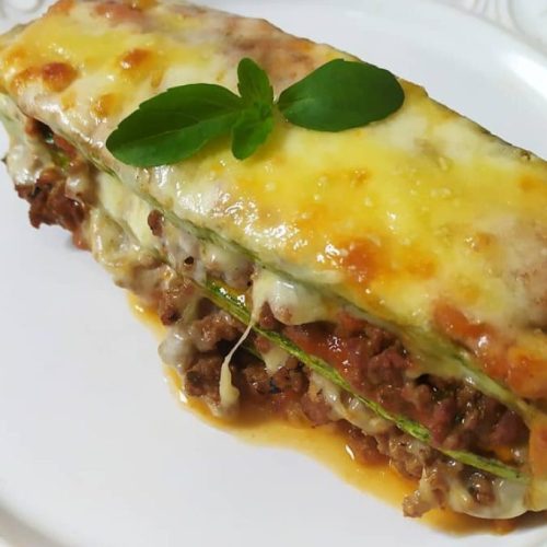 "Delicie-se com a Lasanha de Abobrinha com Carne Moída, uma versão mais leve e igualmente saborosa que vai renovar seu amor por lasanhas!"