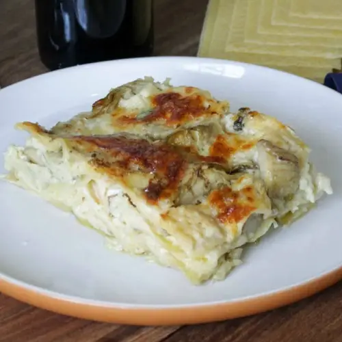 As alcachofras são amplamente cultivadas e apreciadas na região mediterrânea, incluindo a Itália, onde são usadas em várias receitas, desde entradas até pratos principais. A incorporação de alcachofras em uma lasanha pode ter sido uma forma de aproveitar esse ingrediente nutritivo e saboroso, criando uma versão diferente do prato clássico, mas ainda honrando suas raízes italianas.