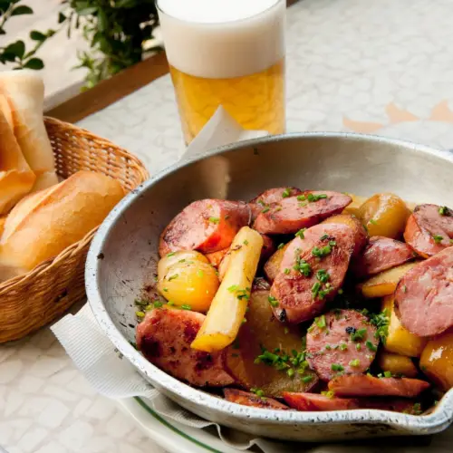 Qual é o melhor acompanhamento para servir com linguiça na cachaça?