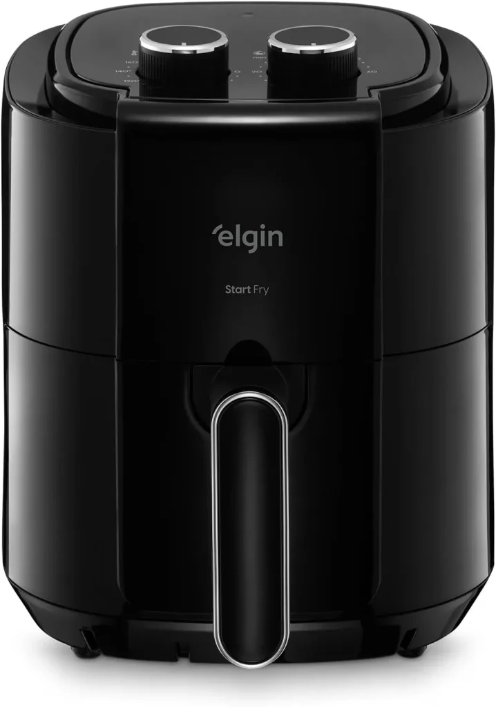 A Elgin Start Fry é ideal para quem procura uma air fryer compacta e acessível. Com capacidade de 3,5 litros e potência de 1400W, oferece bom desempenho para o preparo de porções menores.