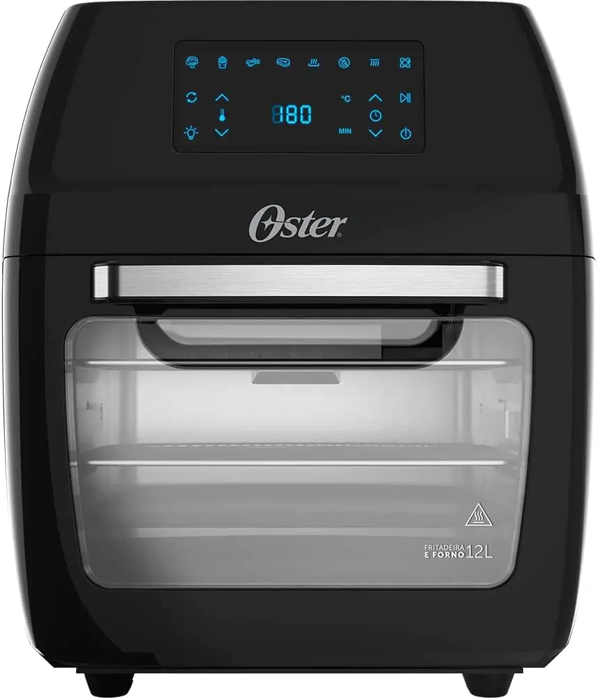 A Oster OFRT780 se destaca por unir air fryer e forno em um único aparelho, oferecendo grande versatilidade. Com capacidade de 12 litros e potência de 1800W, é ideal para quem prepara grandes receitas ou deseja substituir o forno convencional.
