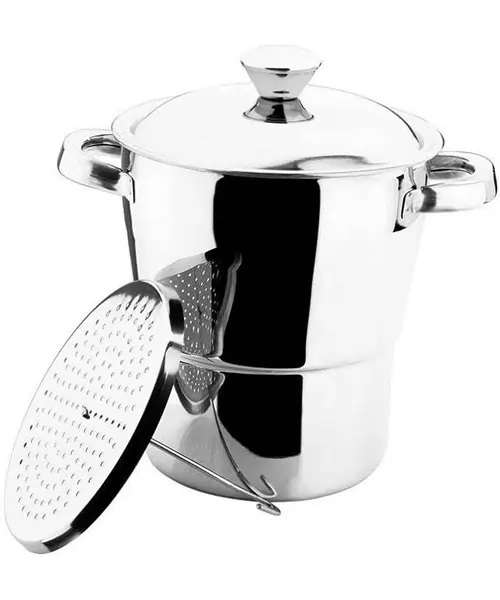 A panela cuscuzeira Tramontina PRIME é prática, fácil de manusear e econômica. Fabricada em aço inoxidável, ela não enferruja e retém mais calor, sendo ideal para o preparo de alimentos que necessitam de alta temperatura. Além disso, pode ser utilizada para cozinhar pequenas porções de legumes no vapor, oferecendo versatilidade para sua cozinha.