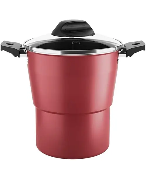 Para preparar suas receitas com mais praticidade, você precisa de uma panela especialista no que faz. A cuscuzeira da linha Especiarias prepara o cuscuz no vapor, deixando-o salgado e molhado na medida certa. Com estrutura de alumínio que cozinha o alimento por igual e mais rápido, possui antiaderente Pro-flon que não gruda e é fácil de limpar. A tampa de vidro com saída para vapor e os cabos de baquelite que não esquentam garantem segurança e praticidade. Disponível na cor vermelho cereja.