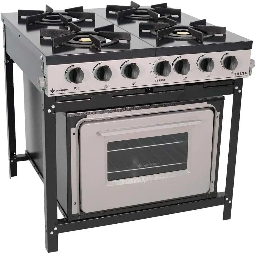 O Fogão Industrial 4 Bocas com Forno Linha Bravo da Venâncio é um modelo que se destaca pelo alto desempenho dos seus queimadores, oferecendo aquecimento rápido e eficiente.