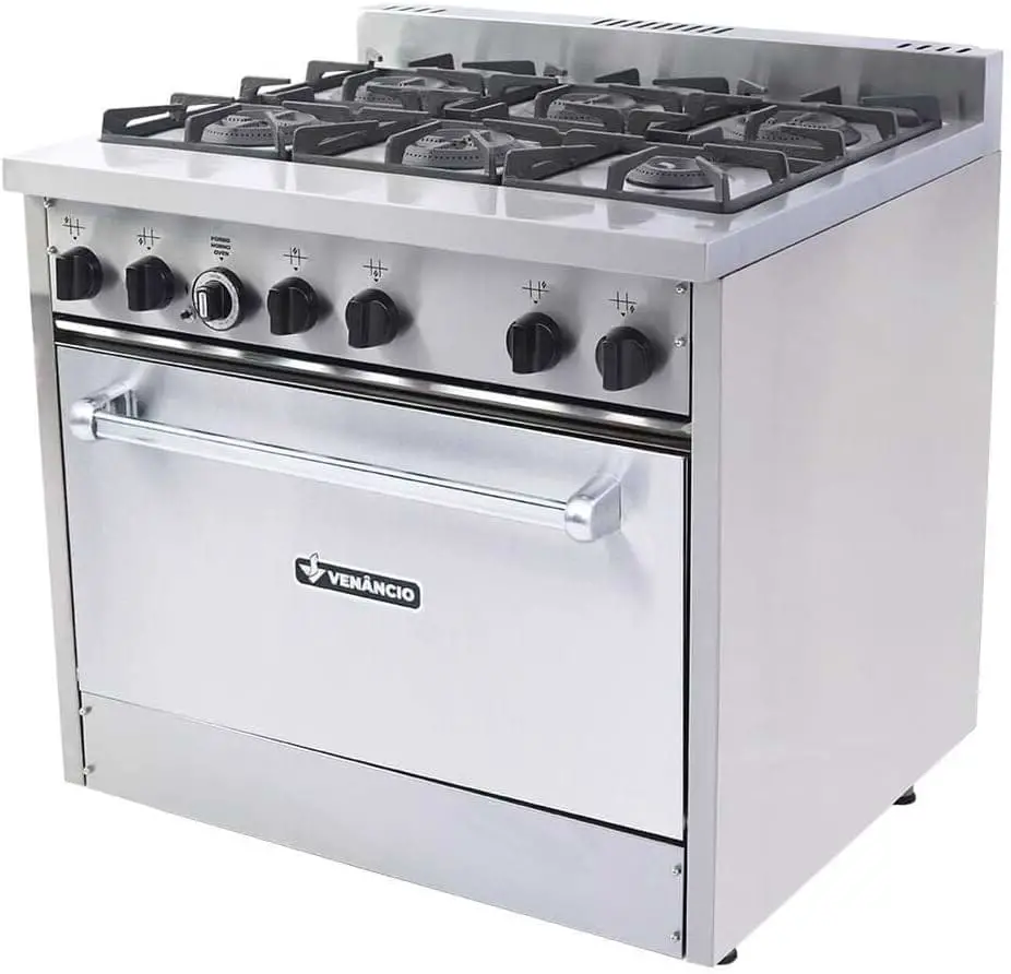 O Fogão Industrial Venâncio 6 Bocas 3 Duplas a Gás Baixa Pressão chama atenção pelo seu acabamento em aço inoxidável, que confere maior durabilidade, resistência à corrosão e facilidade de limpeza.