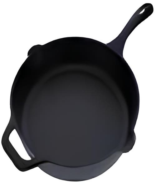 Com alças projetadas para facilitar o manuseio e permitir o derramamento eficiente, essas frigideiras vêm pré-temperadas para uso imediato.