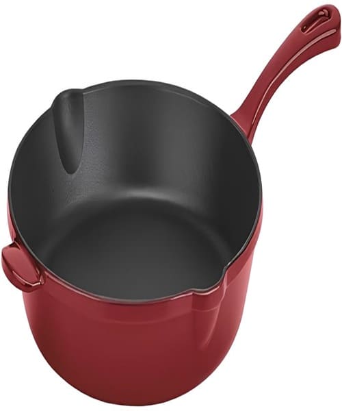 O esmalte que reveste o ferro não só adiciona uma camada extra de proteção contra desgastes e ferrugem, mas também oferece uma superfície lisa que impede os alimentos de grudarem, facilitando a limpeza.