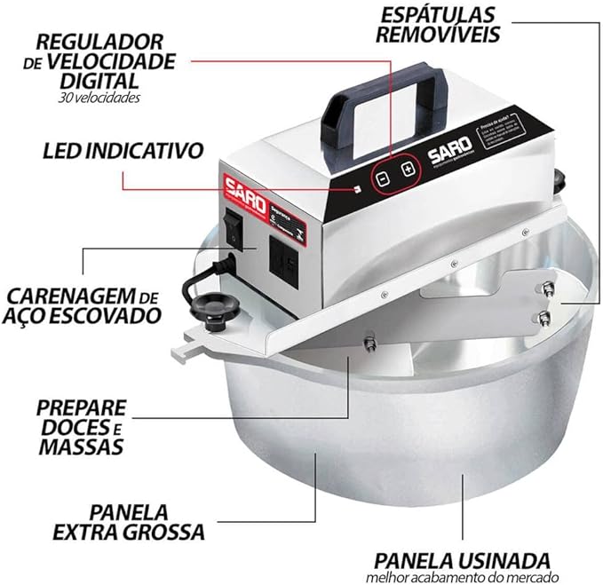 Detalhes como o espaço entre o motor e a base de sustentação garantem a circulação de ar adequada, evitando o superaquecimento e prolongando a vida útil do equipamento. Este cuidado com a qualidade construtiva não apenas assegura a durabilidade da panela, mas também garante um cozimento eficaz e seguro dos alimentos.