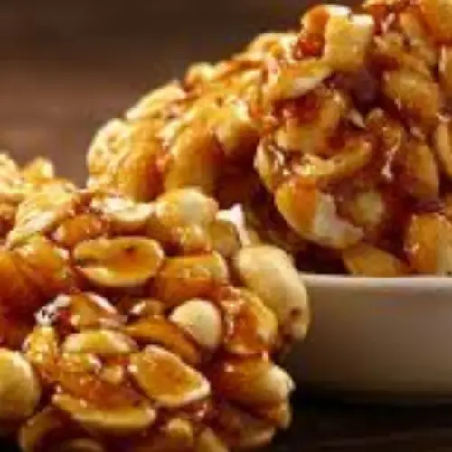 - Junte o amendoim: Volte o amendoim torrado para a panela com a calda. Adicione a pitada de sal e continue mexendo até que o amendoim esteja bem envolvido pelo caramelo.
