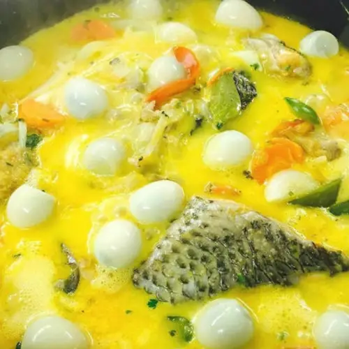 - Regue tudo com o leite de coco e adicione a água. Tampe a panela e cozinhe em fogo baixo por cerca de 30 a 40 minutos, até que o peixe esteja macio e os legumes bem cozidos.